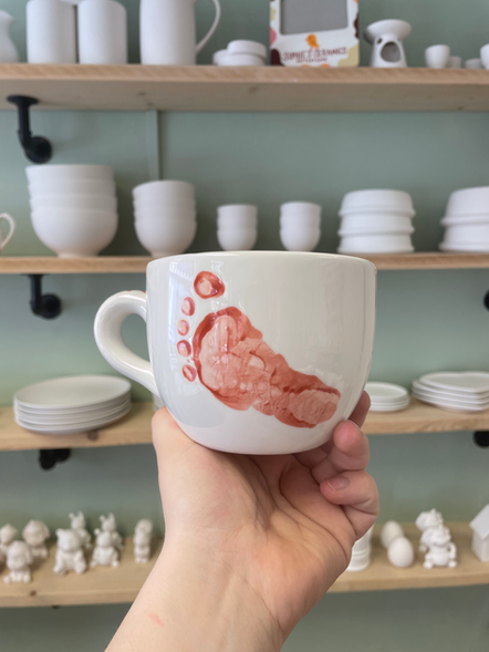 We don't want anyone to miss out on the experience, but if you can't get to us for any reason - maybe your baby is super tiny, you're recovering, or you simply don't feel like being out in public yet, we offer take away packages so you can get the print in the comfort of your own home, then bring the piece back to us so we can fire it.